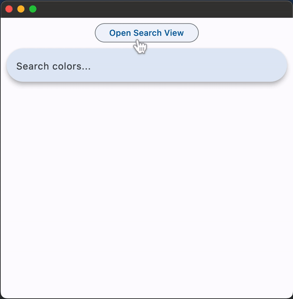 By default, the search view has the same width as the search bar and is ⅔ the height of the screen. If the width and height of the view are within the view_size_constraints, the view will show its default size. Otherwise, the size of the view will be constrained by this property.